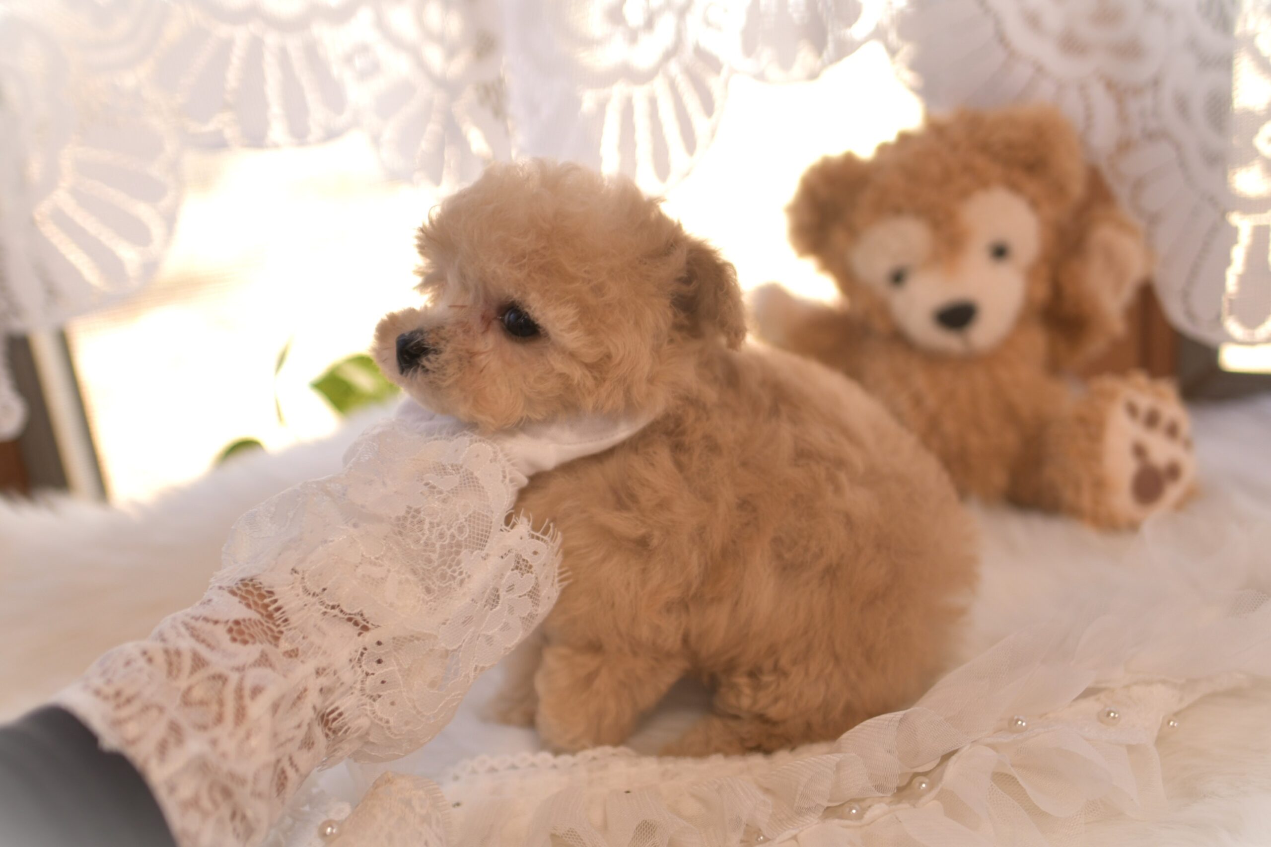 優しいクリーム色に近いアプリコットの女の子、ファーファちゃんのご紹介です。